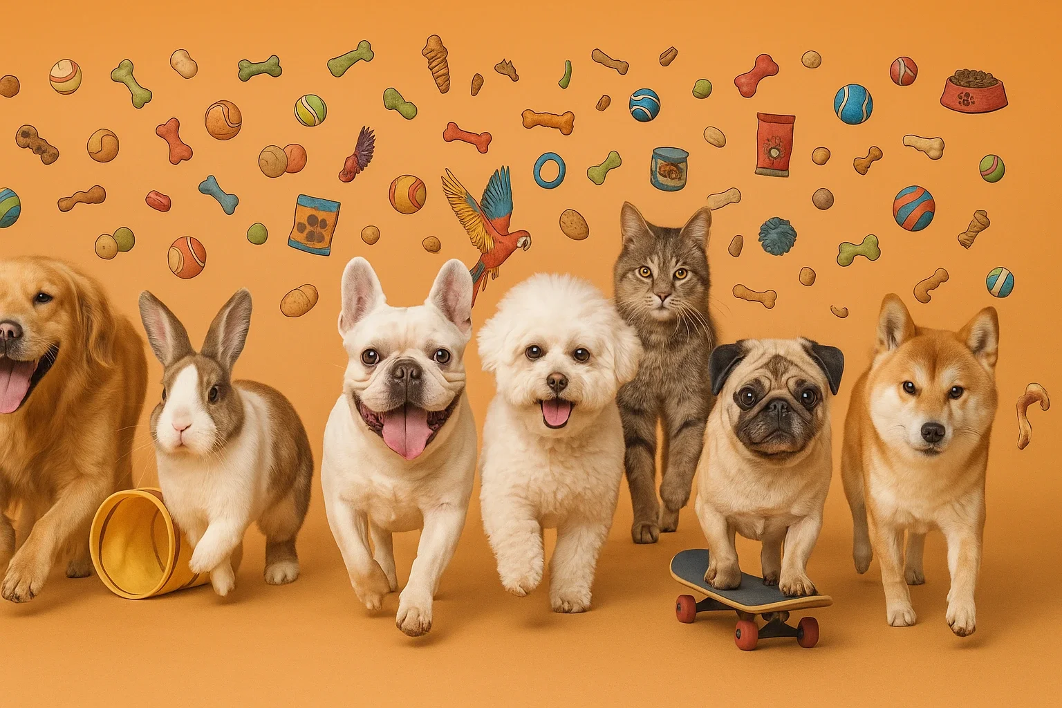 Extensive inventory: thousands of pet products including food, toys, grooming items, pet care, and animal wellness supplies.
